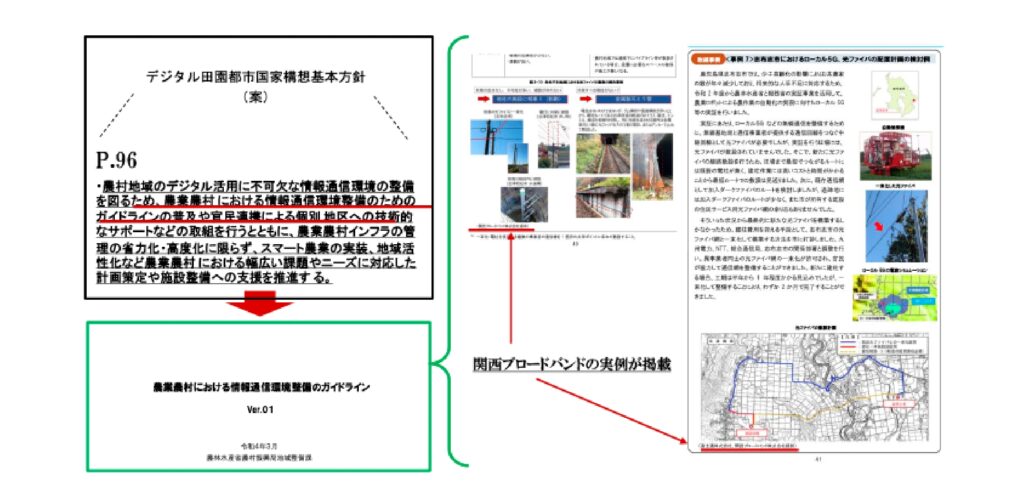 総務省や農林水産省のL5G事業から発展し、農林水産省の専門委員を拝命している。その勉強会で農林水産省に協力した農業農村部への情報通信基盤整備のガイドラインに、当社の地域での施工実例が紹介され、それがデジタル田園都市国家構想で引用されている。